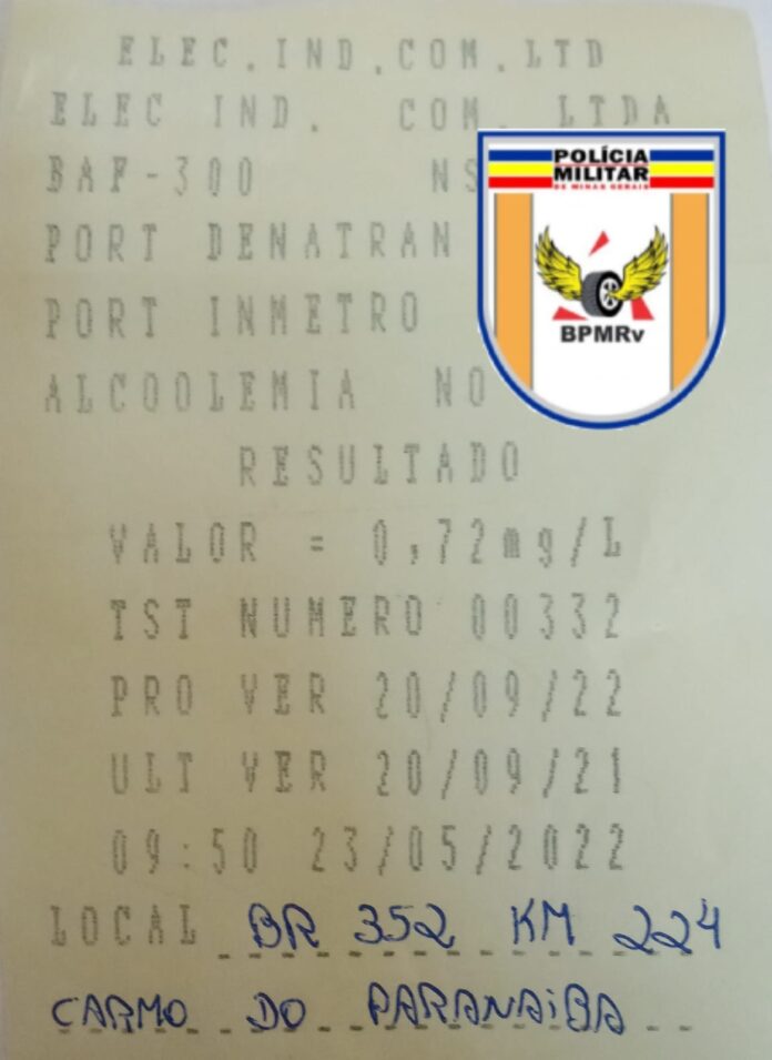 O motorista recebeu voz de prisão e foi conduzido até a presença da autoridade policial na Delegacia de Carmo do Minas.