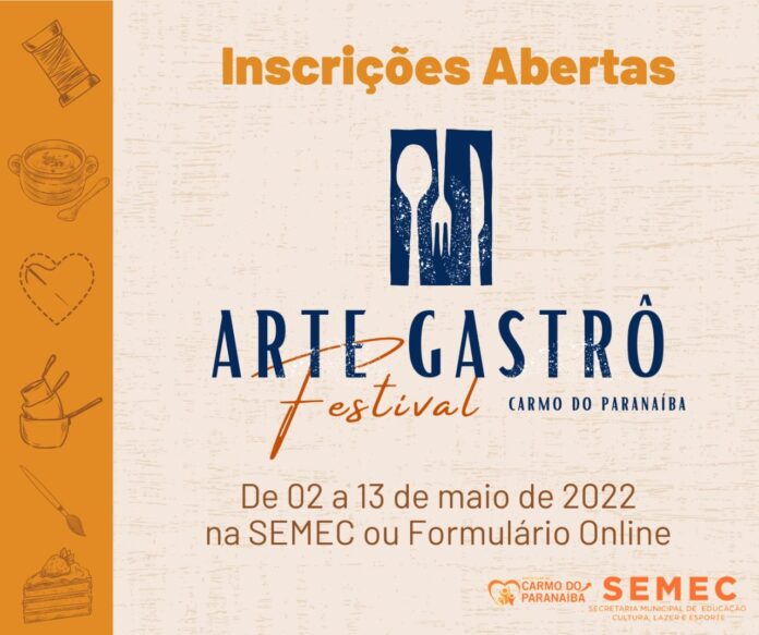 Já estão abertas as inscrições para o 9° ARTE GASTRÔ FESTIVAL DE CARMO DO PARANAÍBA.