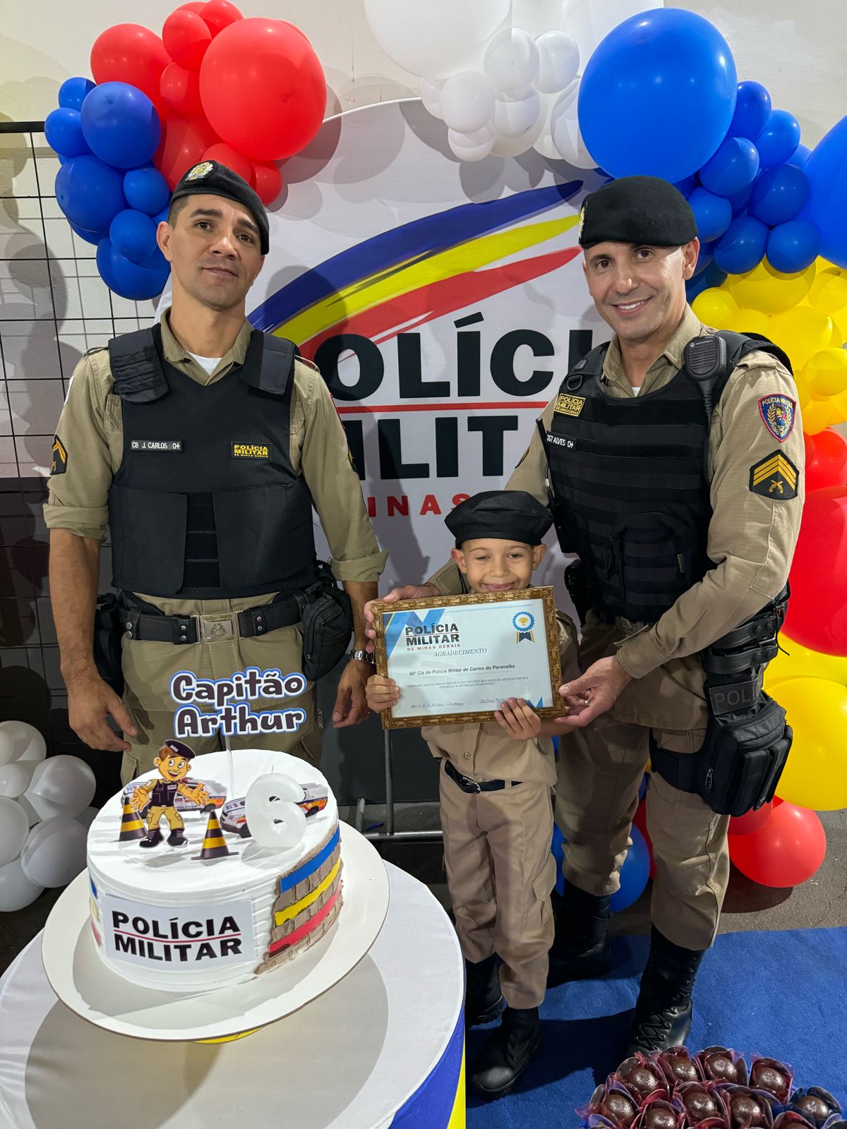 Representantes da Polícia Militar de Carmo do Paranaíba estiveram no último sábado (10) na casa do aniversariante Arthur Claudino de Moraes, de seis anos de idade, no bairro Paranaíba.