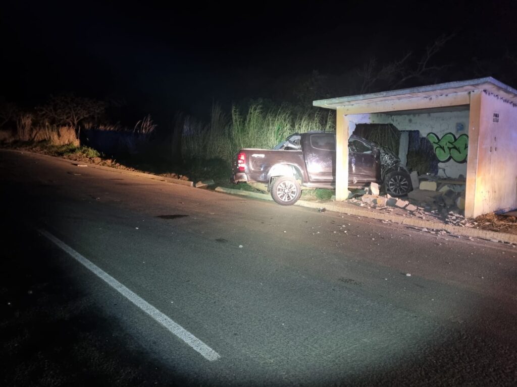 Homem de 57 anos invadiu a contramão e colidiu contra reboque e guarita de ponto de ônibus; Polícia Militar Rodoviária precisou desviar para evitar colisão frontal