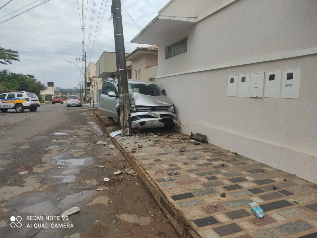 Carmo do Paranaíba – Motorista passa mal ao volante e atinge parede de imóvel e poste de iluminação pública