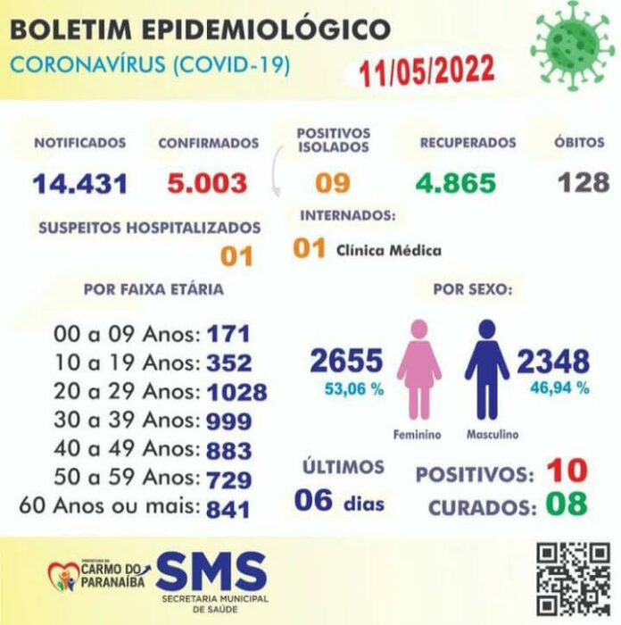 Já são quase 15 mil notificações sobre a doença e nos últimos seis dias, 10 casos de Covid-19 foram confirmados e oito pessoas saíram do isolamento em Carmo do Paranaíba.