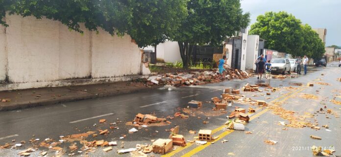 A chuva e o vento forte acabaram derrubando parte do muro que abriga o recanto do galinho carmense.