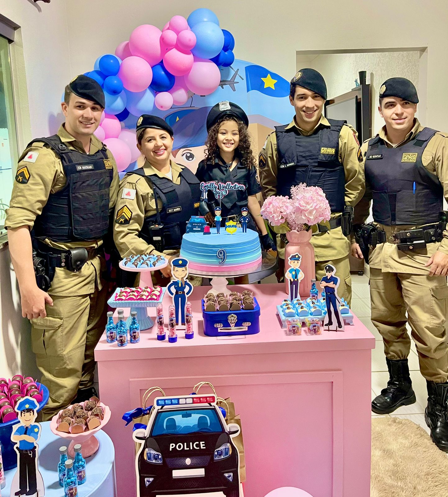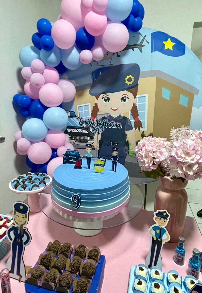 O tema para seu aniversário era a Polícia Militar e foi escolhido pela própria Emilly que é apaixonada pela instituição.