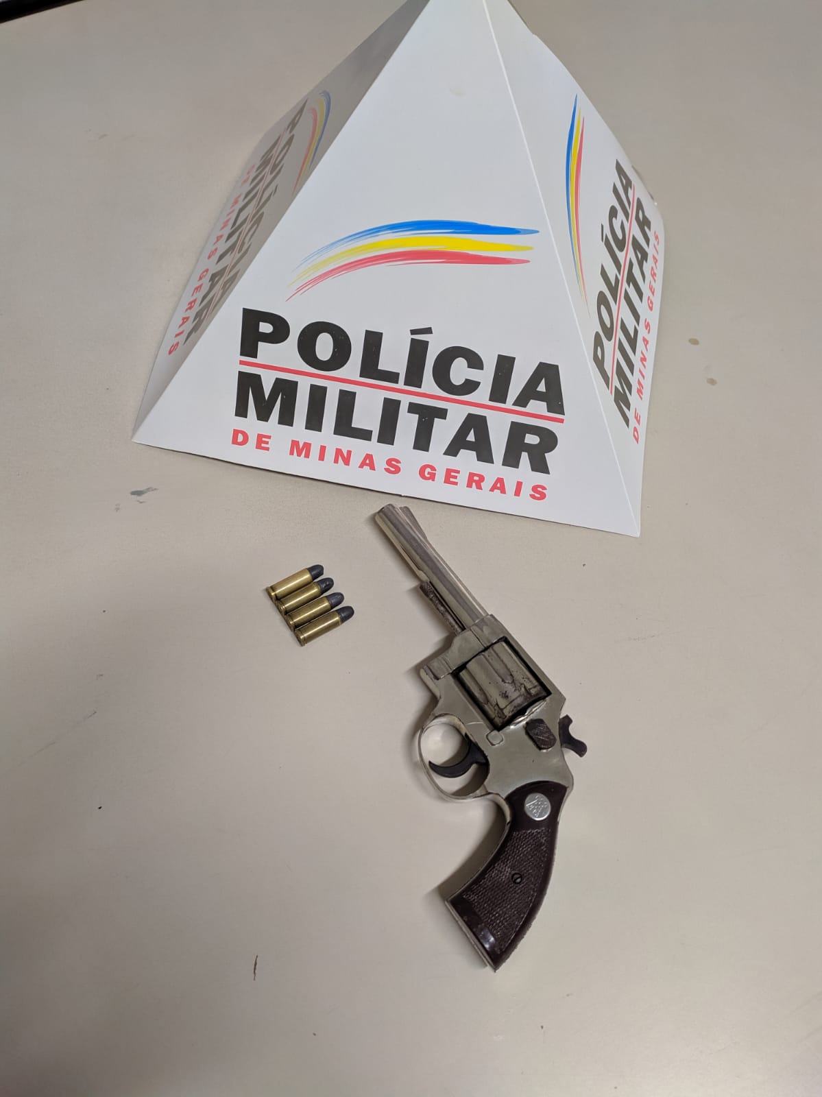 O segurança foi abordado e constatou-se que ele portava um revólver calibre 32 sem registro, carregado com 4 munições. Ele informou tê-lo comprado de um desconhecido.