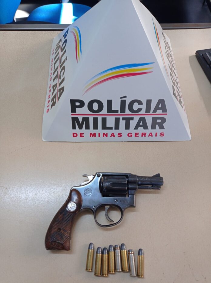 Diante das informações passadas, as viaturas deslocaram para o bairro Bela Vista e localizaram o autor já no bairro, caminhando em direção à residência de sua namorada. As guarnições abordaram o autor e após realizar busca pessoal encontrou em sua cintura um revólver calibre .38 carregado com seis munições e no bolso de sua calça havia mais três munições intactas.