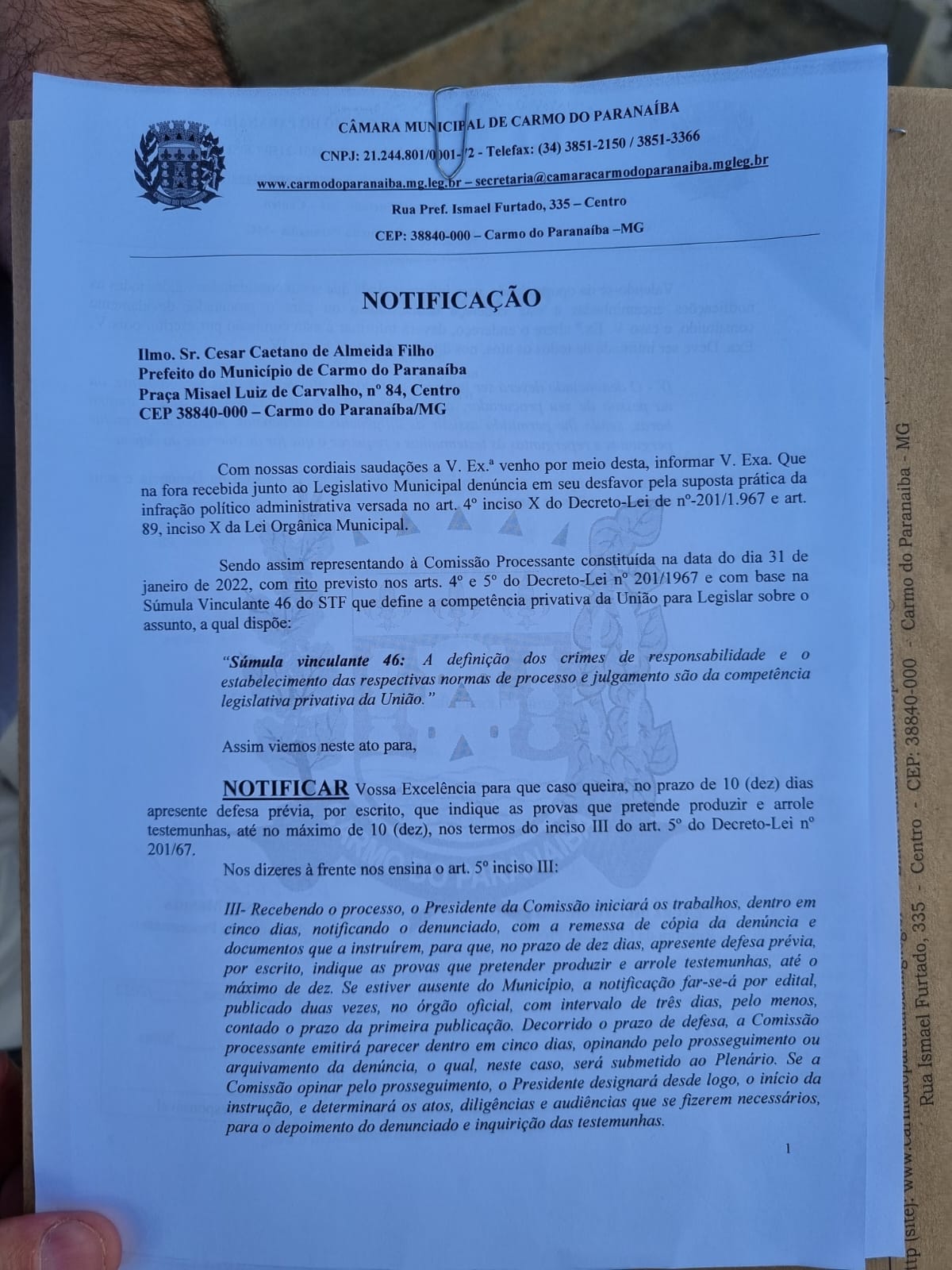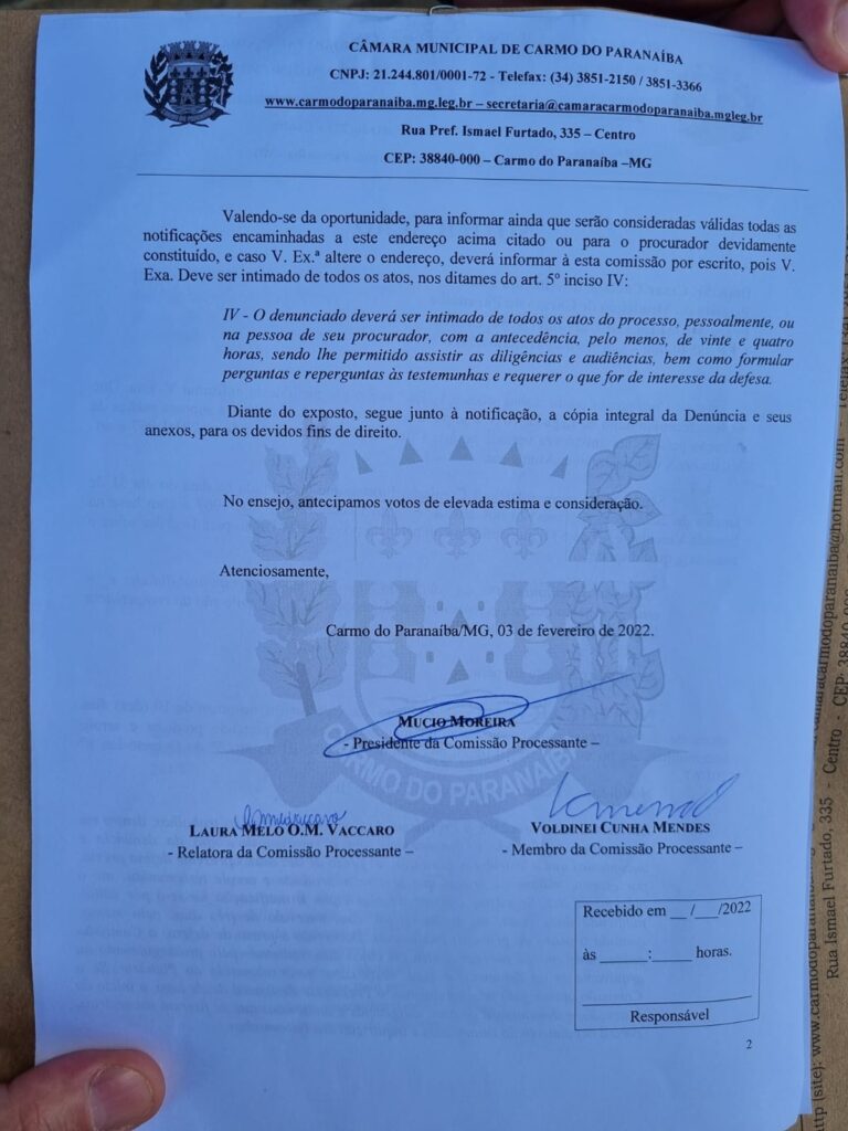 Carmo do Paranaíba – Prefeito recusa assinar notificação de Comissão Processante