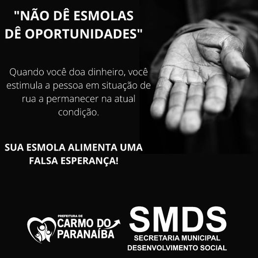 A prefeitura de Carmo do Paranaíba, através da Secretaria Municipal de Desenvolvimento Social, lançou hoje a campanha “Não dê esmolas, dê oportunidades”.