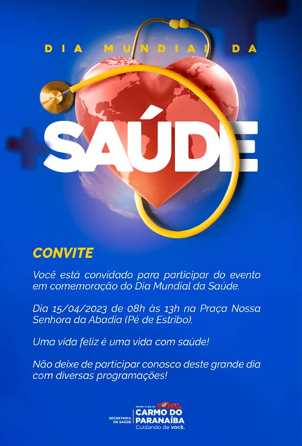 A prefeitura de Carmo do Paranaíba, através da Secretaria Municipal de Saúde, está organizando uma grande comemoração para o Dia Mundial da Saúde.