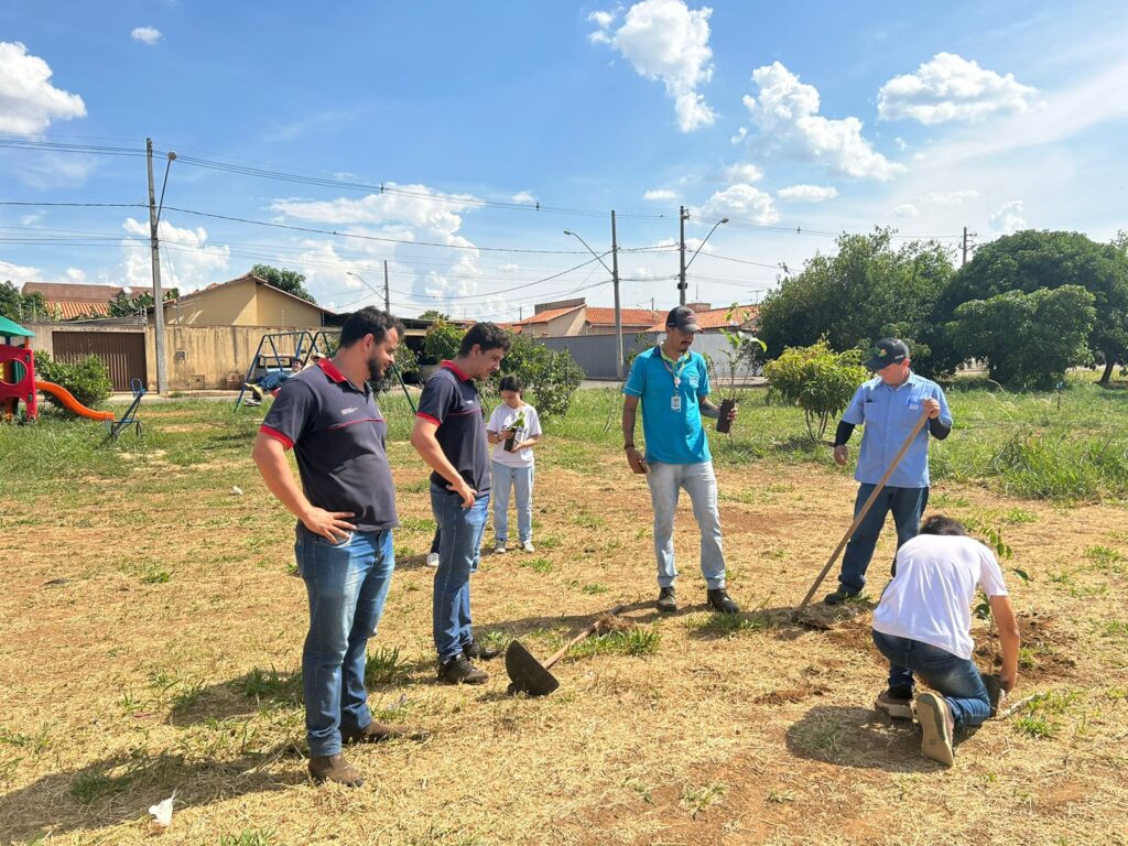 A Companhia de Saneamento de Minas Gerais (Copasa), no âmbito da Unidade de Negócio Oeste (UNOE), promoveu, nesta sexta-feira (17/11), o plantio de 40 mudas de espécies nativas em uma área verde do bairro Novo Paraíso, em Carmo do Paranaíba. A ação foi realizada com os cerca de 70 estudantes do sétimo e oitavo anos da Escola Estadual Professor José Hugo Guimarães.