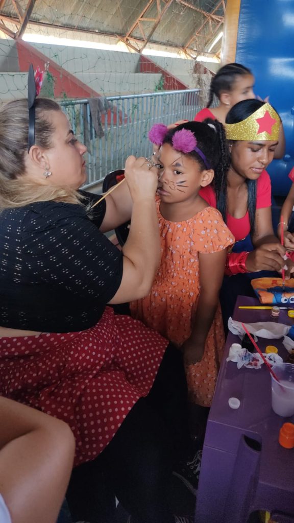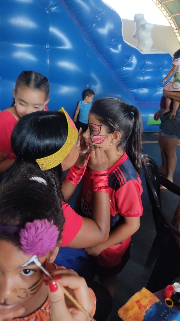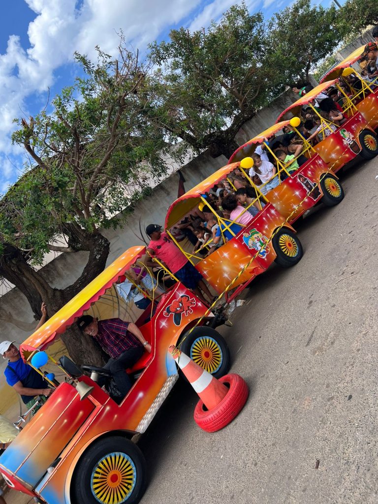 O trenzinho da alegria também esteve presente juntamente com o pula-pula e o tobogã. O trabalho de pintura no rosto também foi um sucesso entre as crianças.