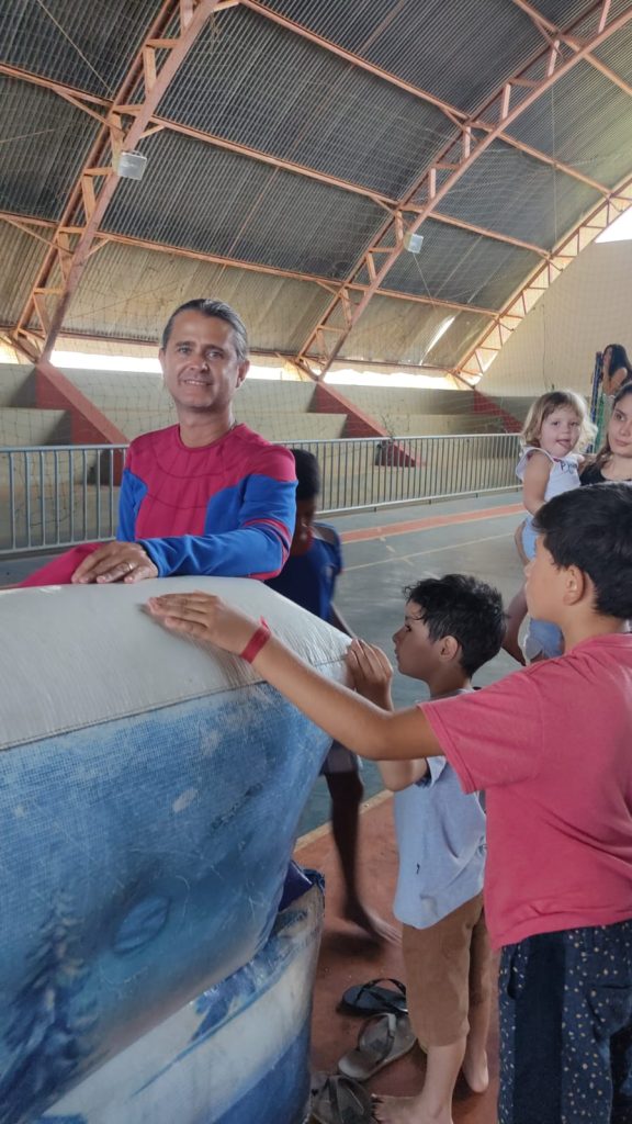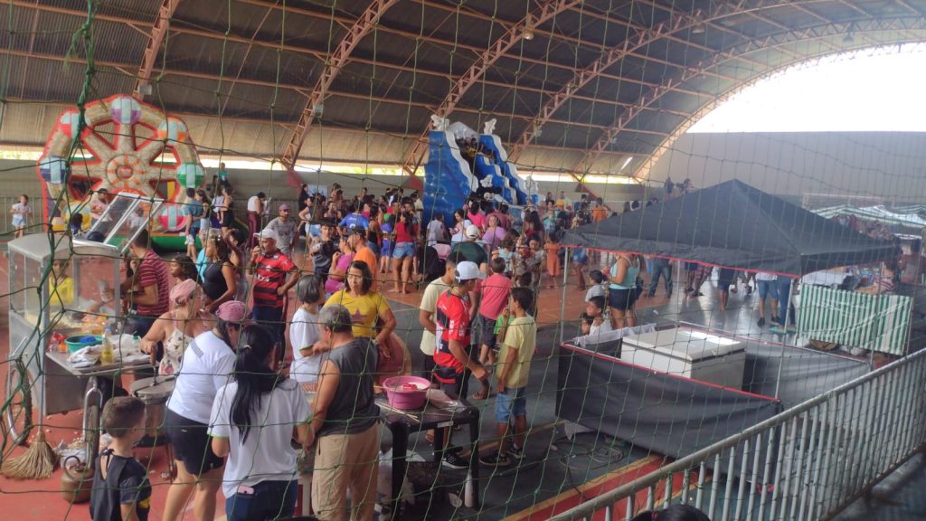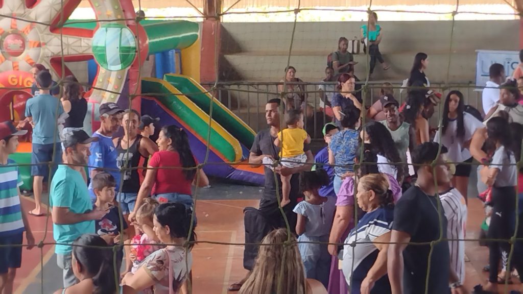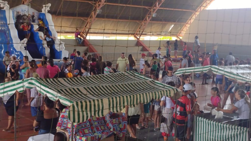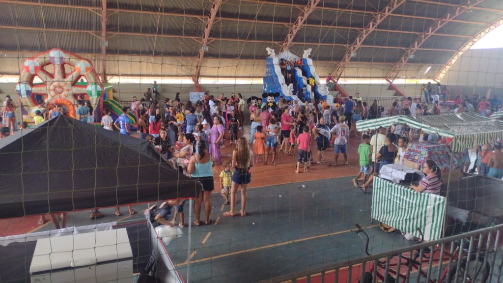 Na tarde de hoje (15), aproximadamente, 500 pessoas estiveram no poliesportivo Santa Cruz, em Carmo do Paranaíba. Entre elas, muitas crianças que puderam aproveitar toda a estrutura preparada especialmente para elas.