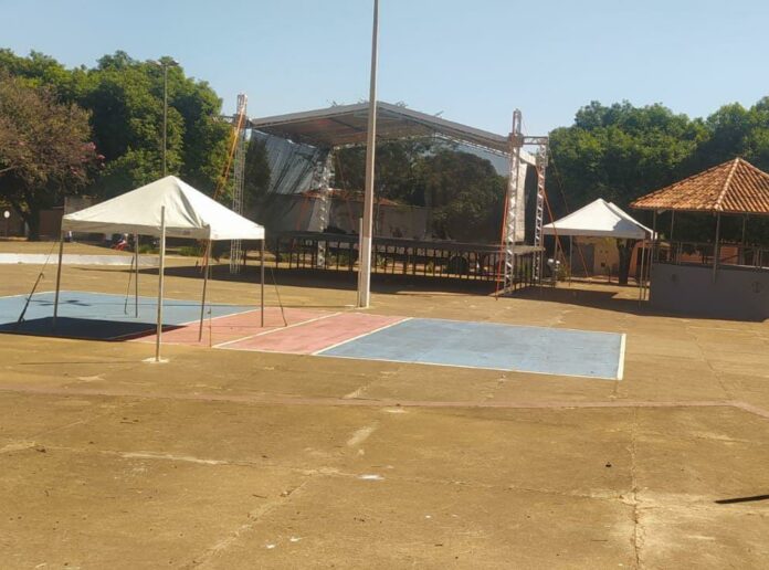 Além do palco, as barracas já estão montadas e os detalhes finais para a festa devem ficar prontos amanhã de manhã.