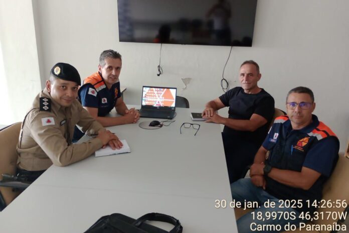 Na data de hoje (30), foi realizada uma reunião na Prefeitura Municipal de Carmo do Paranaíba com o objetivo de discutir a implementação da Defesa Civil no município. O encontro contou com a presença do Capitão Telles, do Capitão Deyvison, do Sargento Pereira e do Secretário de Meio Ambiente, Delmo.