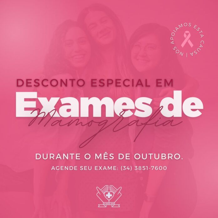 Neste mês de outubro, a Santa Casa de Misericórdia de Carmo do Paranaíba oferece um desconto especial em mamografias, em apoio à campanha do Outubro Rosa.