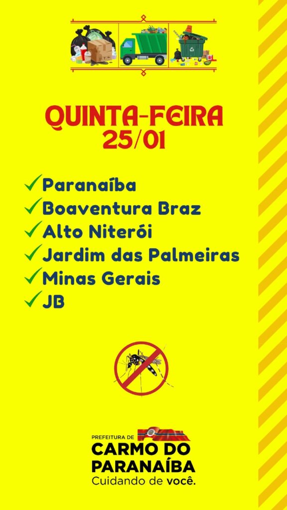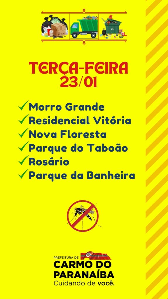 Terça, 23/01 – Morro Grande, Residencial Vitória, Nova Floresta, Parque do Taboão, Rosário, Parque da Banheira;