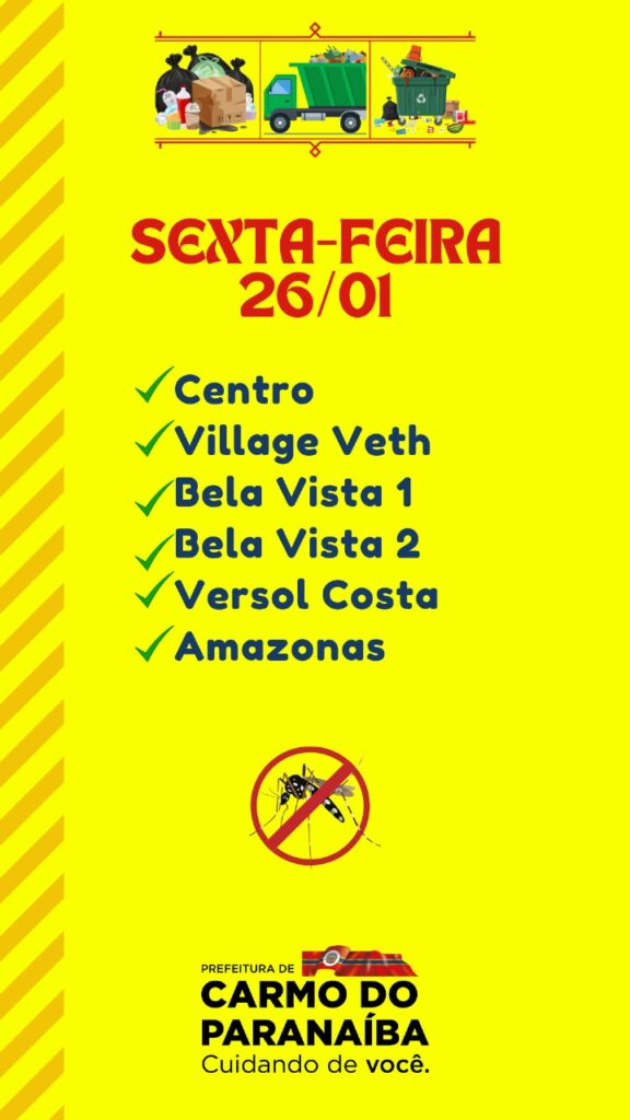 Sexta, 26/01 – Centro, Village Veth, Bela Vista 1, Bela Vista 2, Versol Costa, Amazonas.