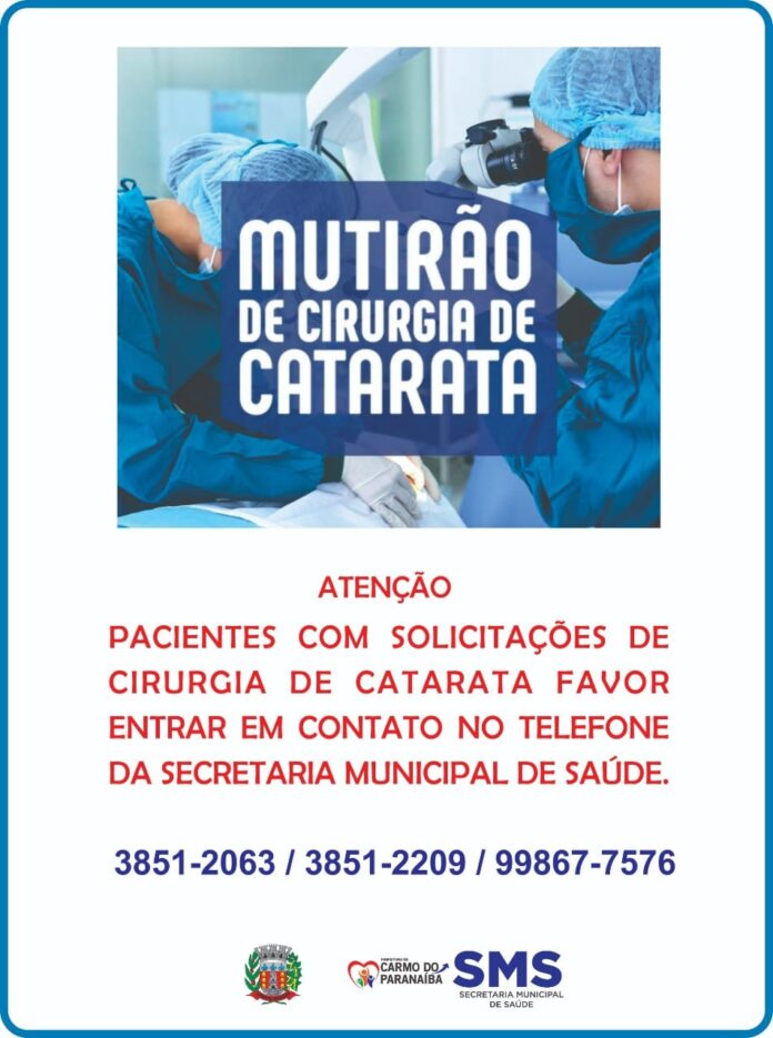 A Secretaria Municipal de Saúde – SMS de Carmo do Paranaíba está realizando um mutirão de cirurgia de catarata.