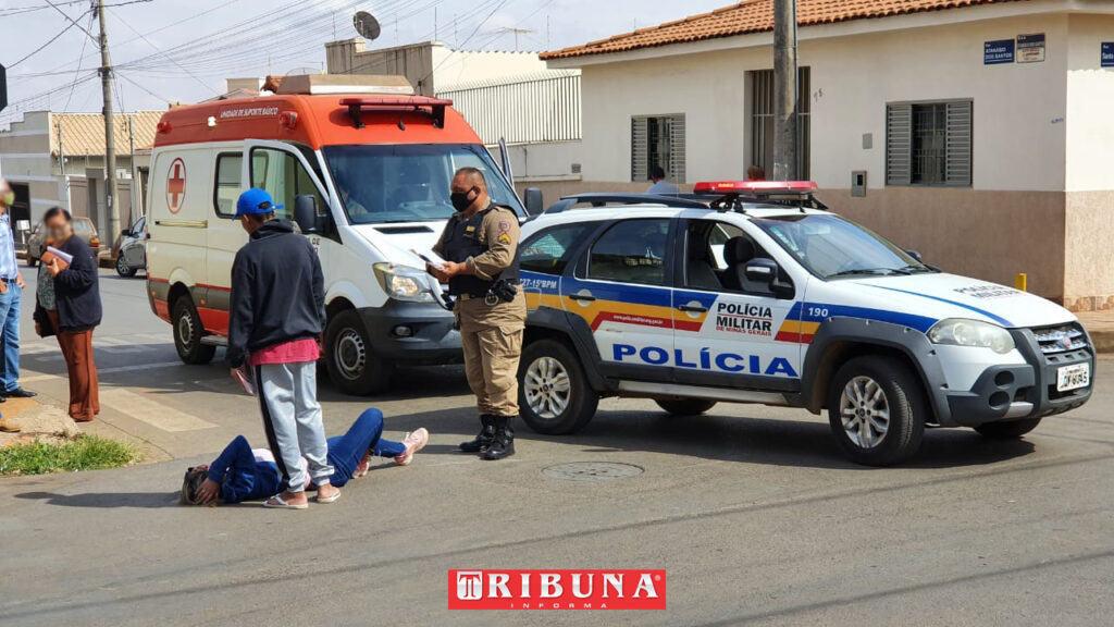 Carmo do Paranaíba Urgente: Acidente entre as ruas Atanásio dos Santos e Santo Antônio deixa uma mulher ferida
