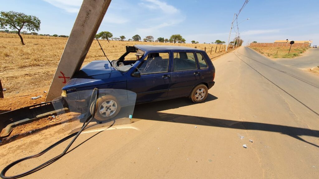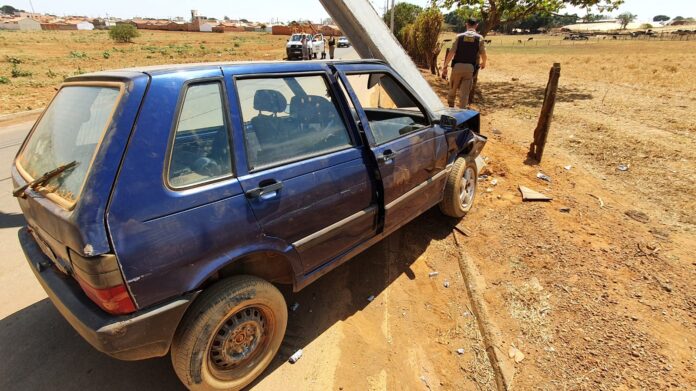 Na manhã deste domingo (19), um veículo Fiat Uno foi encontrado abandonado após bater em um poste e derrubá-lo, no final da rua Sete de Setembro, saída para a Cachoeirinha.