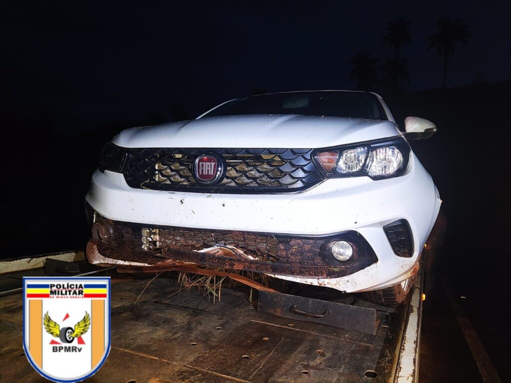 No local a equipe deparou com um Fiat Argo, cor branca e um Fiat Palio, cor preta, ambos emplacados em Carmo do Paranaíba.