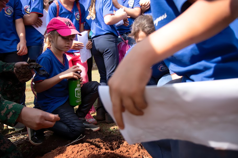Durante a visita, as crianças tiveram a oportunidade de conhecer de perto as operações da fazenda, aprendendo sobre práticas agrícolas sustentáveis e a importância da preservação ambiental. Como parte das atividades, os alunos plantaram duas árvores, contribuindo diretamente para o reflorestamento da área.