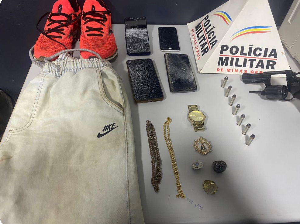 Parte dos objetos roubados foram recuperados. A Arma de fogo utilizada e as munições foram apreendidas.