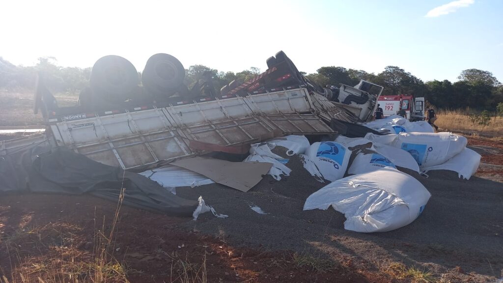 O veículo transportava 39 toneladas de fertilizantes que se espalharam fora da pista de rolamento.