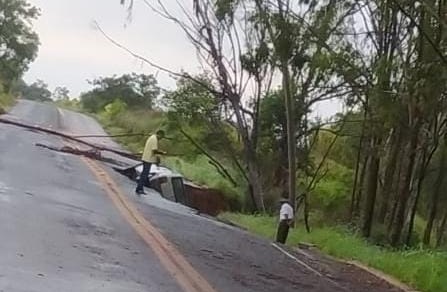 O carro que caiu em um buraco que se abriu na rodovia MGC-354, em Presidente Olegário, foi retirado no início da manhã desta quarta-feira (9). O condutor foi resgatado por motoristas que passavam pelo local.