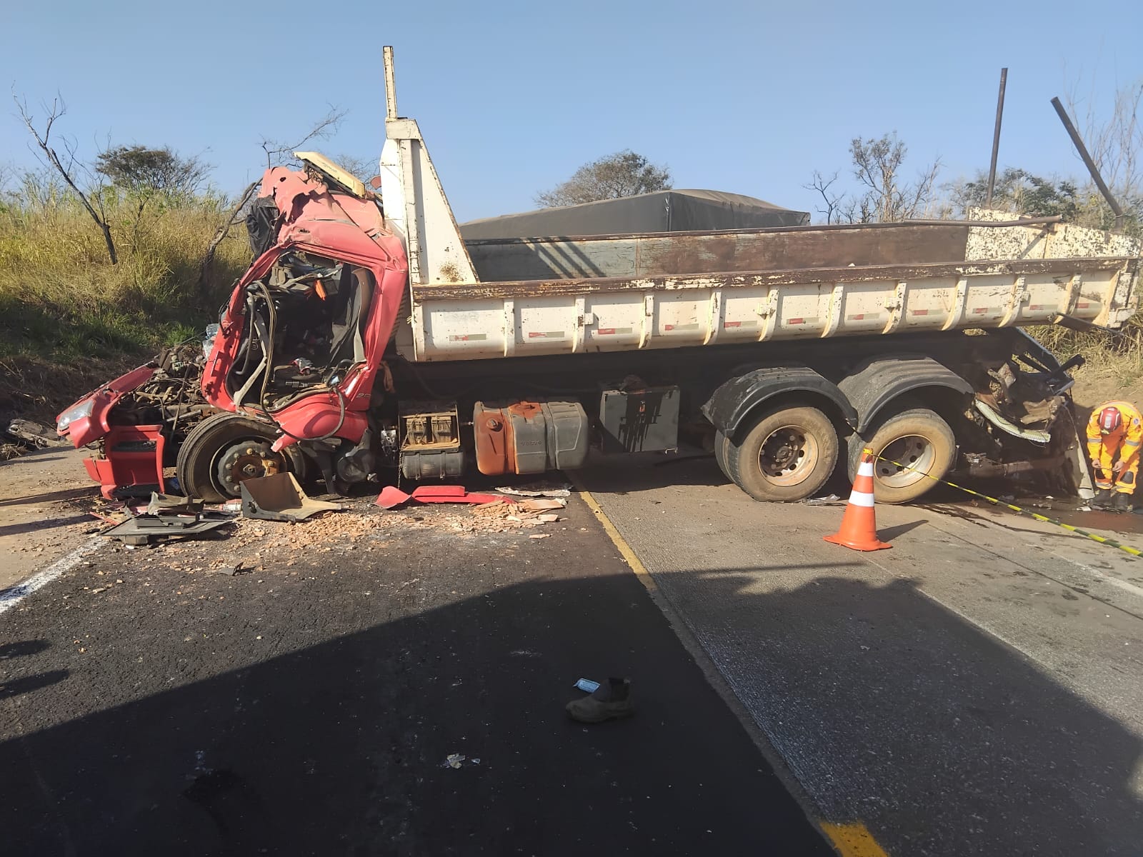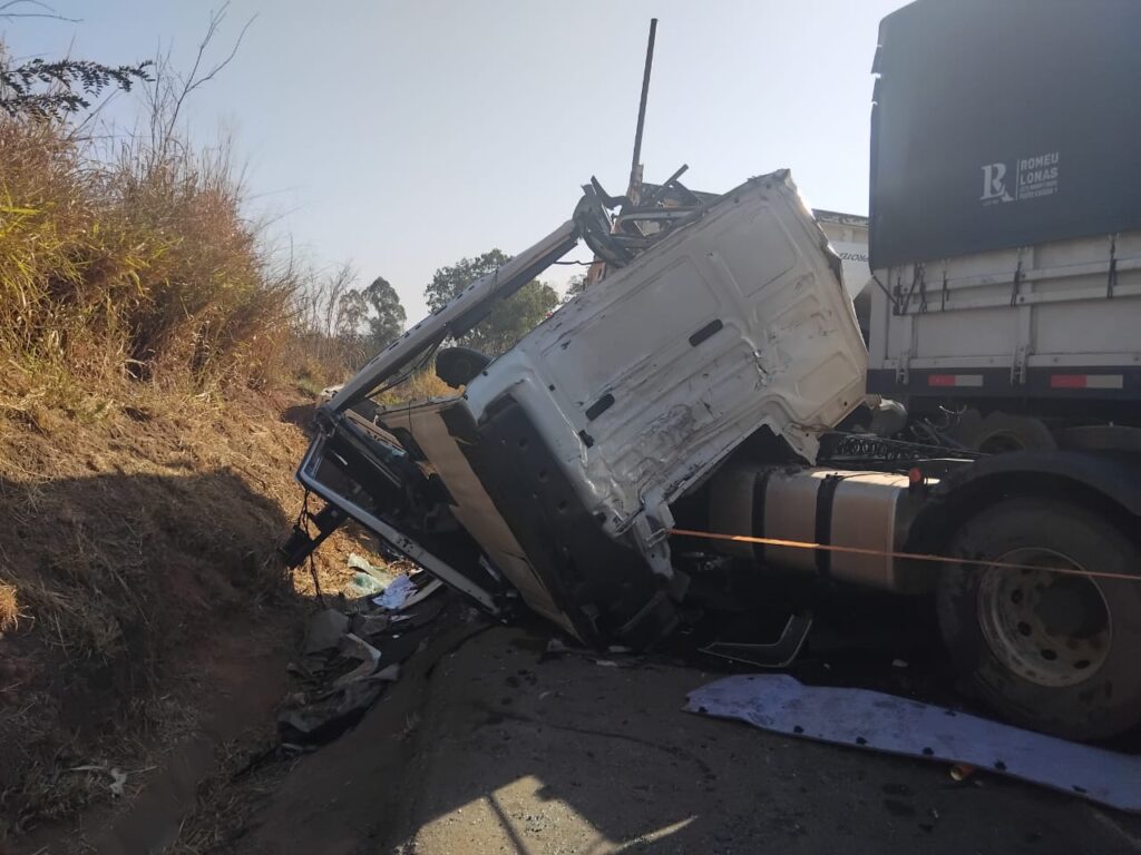Na tarde desta quinta-feira (21), por volta das 14h20, um grave acidente foi registrado no km 498 da BR-262, em Luz. A ocorrência envolveu três veículos de carga — dois caminhões e um rodotrem — que seguiam no mesmo sentido da rodovia.