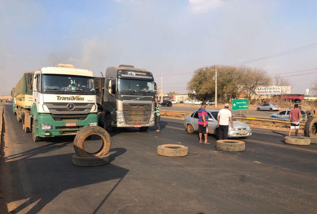 Um grupo de caminhoneiros decidiu fazer um ato na BR-365, em frente ao Posto Patão, em Patos de Minas. A pista foi interditada para veículos de carga na tarde desta quinta-feira (09).