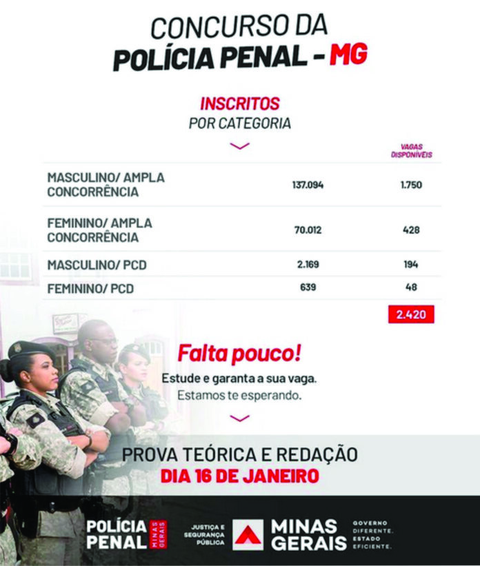 209.213 pessoas se inscreveram para o concurso da Polícia Penal, que teve suas inscrições encerradas no último dia 21.