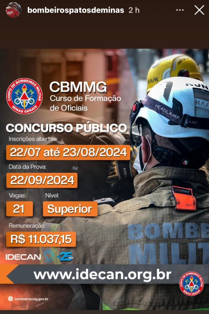 O Corpo de Bombeiros Militar do Estado de Minas Gerais (CBMMG) abriu as inscrições para três concursos públicos que, ao todo, somam 329 vagas imediatas, que exigem formação acadêmica de nível superior.