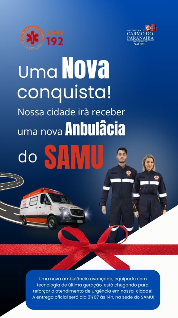 E para fortalecer ainda mais a estrutura de atendimento de urgência, será entregue uma nova ambulância do SAMU, equipada com tecnologia de ponta. A solenidade de entrega acontecerá às 14h, na sede do SAMU, marcando mais uma conquista importante para o município, que passará a contar com mais um veículo para atender ocorrências com agilidade e eficiência.