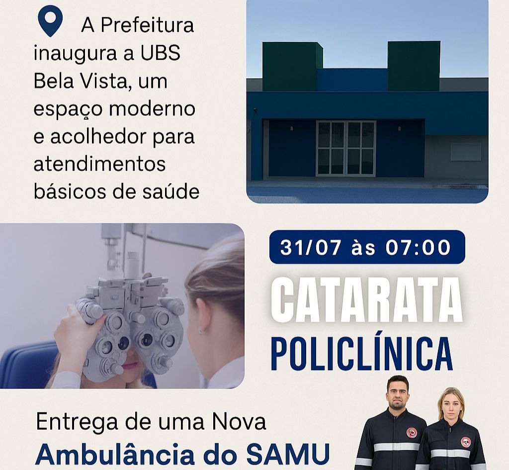 Além da inauguração da UBS, outras duas ações importantes estão previstas para o mesmo dia, como parte da sequência de investimentos na saúde do município.