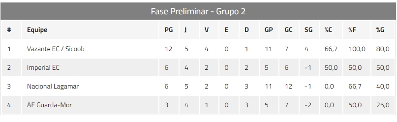 O Vazante está classificado. Precisa vencer o Imperial em Presidente Olegário para terminar entre os oito primeiros. O segundo classificado do grupo, ainda vai depender da decisão da comissão disciplinar.