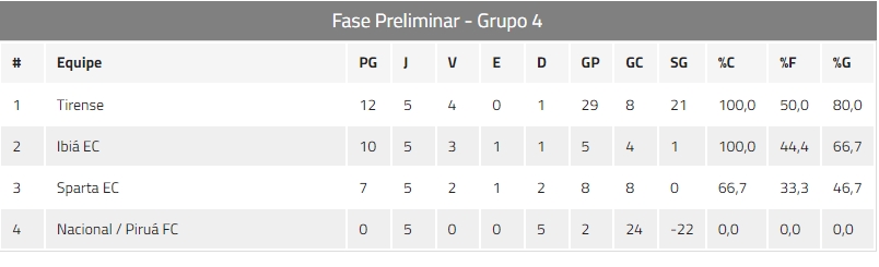 O Tirense já está classificado e encerra diante do Ibiá que precisa de pelo menos um empate. O Sparta precisa vencer o Nacional/Piruá em São Gotardo e torcer por derrota do Ibiá. O Nacional/Piruá já está sem chances de classificação.
