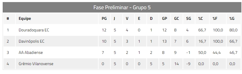 O Douradoquara já está classificado e precisa da vitória para se manter no grupo dos oito primeiros colados na classificação geral. O Davinópolis precisa de um simples empate diante do lanterna Grêmio Vilanovense.