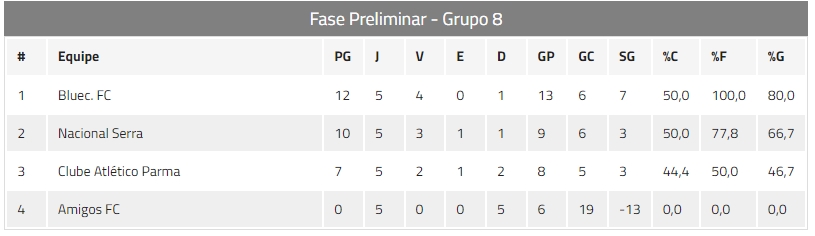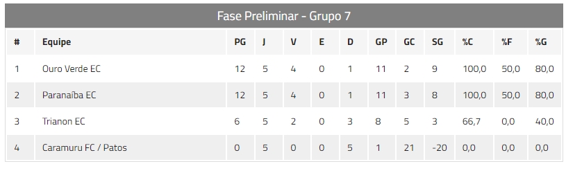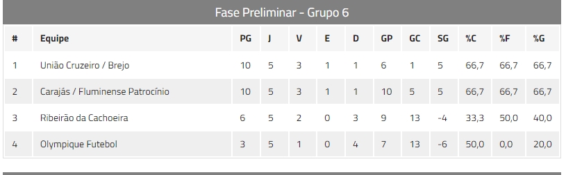 O grupo 6 também já definiu os seus classificados com União Cruzeiro/Brejo e Carajás/Fluminense.
