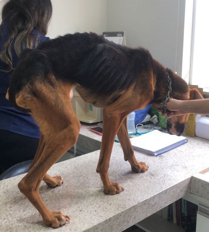 Durante a ação, os militares constataram que uma cadela, sem raça definida, era mantida num local sem condições adequadas de higiene e alimentação, apresentando extrema magreza e sinais de debilidade física.