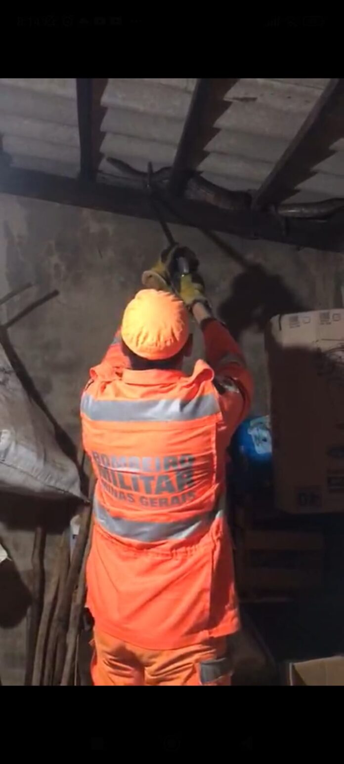 Corpo de Bombeiros captura jiboia em telhado de residência na cidade de Patos de Minas