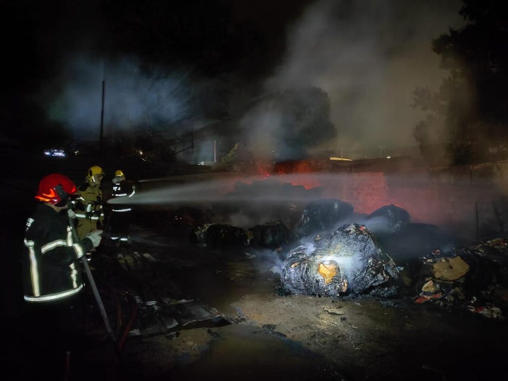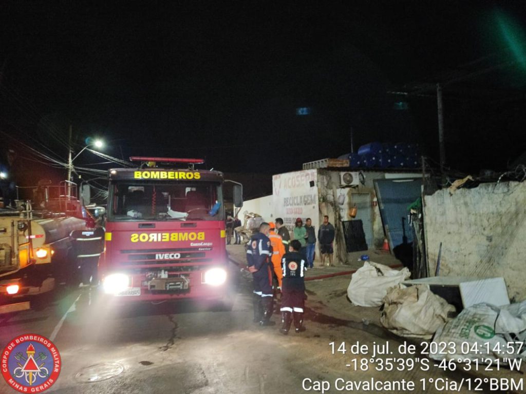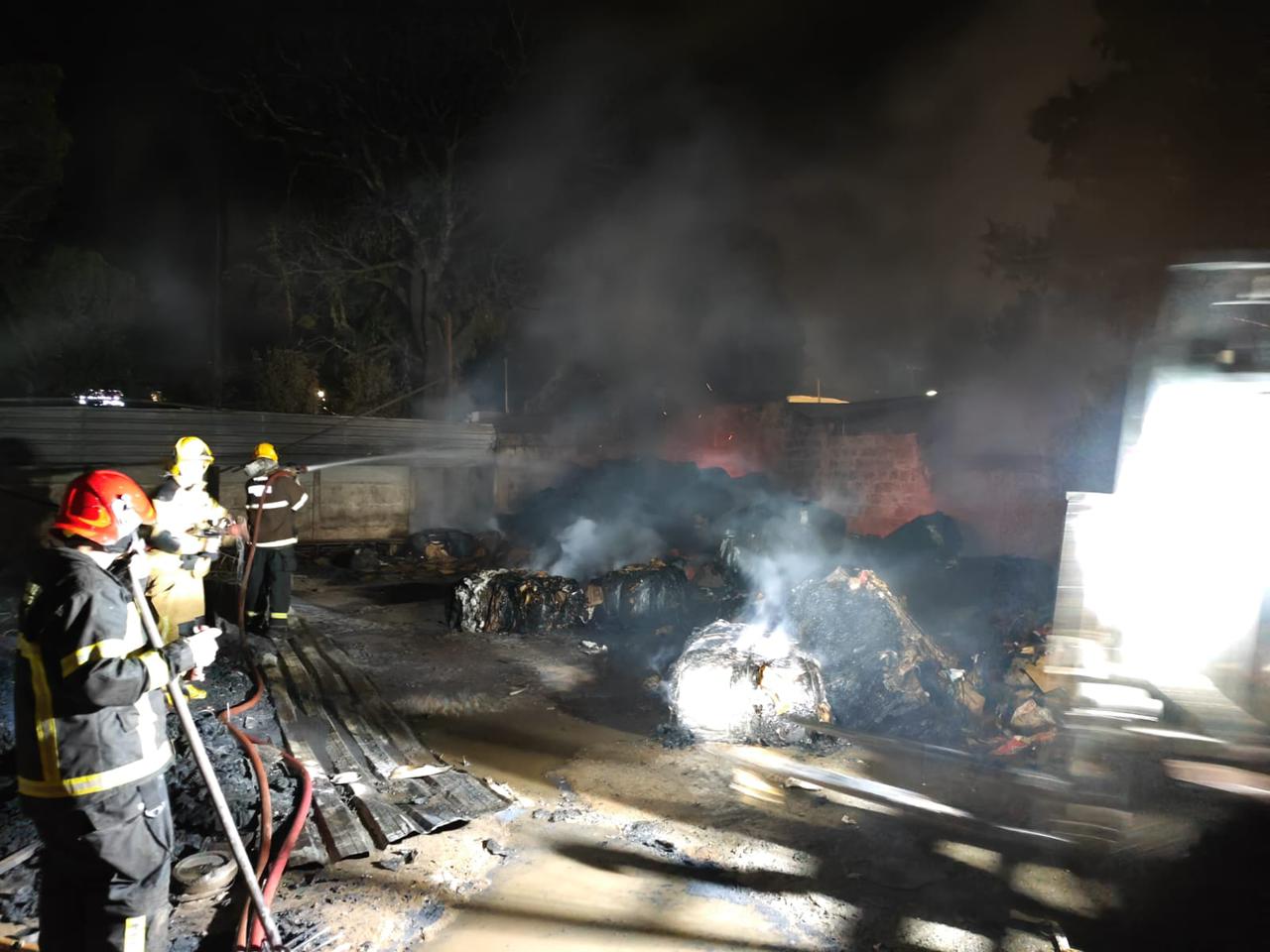 Corpo de Bombeiros de Patos de Minas combate incêndio em empresa de reciclagem