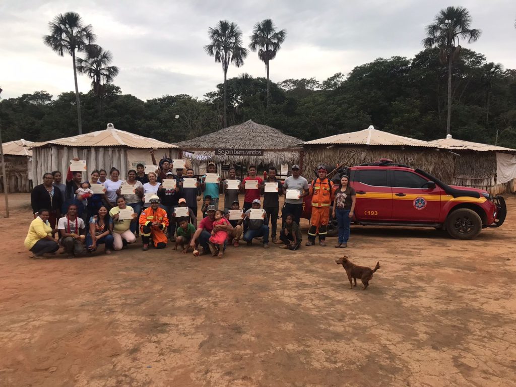 Corpo de Bombeiros ministra treinamento de combate incêndio florestais e primeiros socorros à indígenas em Presidente Olegário
