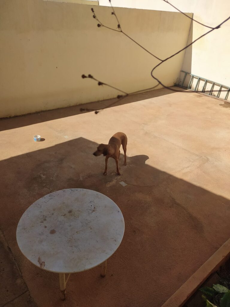 Apesar de ferido o cão permaneceu em sua residência até a chegada dos responsáveis, que tomaram demais providências para o atendimento do animal.