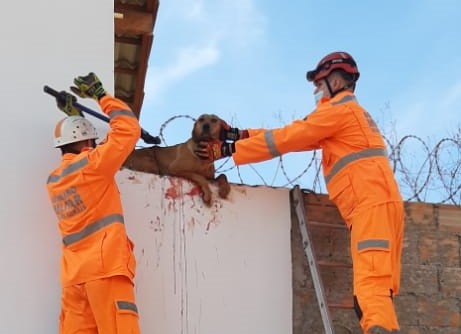 Corpo de Bombeiros socorre cão que estava preso em concertina