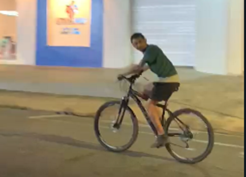 O autor, que é moreno, com barba rala e magro, deu um golpe na cabeça da vítima, que caiu no chão. Em seguida, ele montou na bicicleta da vítima e fugiu.