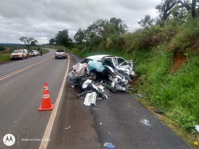 De acordo com o Corpo de Bombeiros, um carro de passeio rodou na pista e bateu com a lateral em um caminhão baú que seguia no sentido contrário.