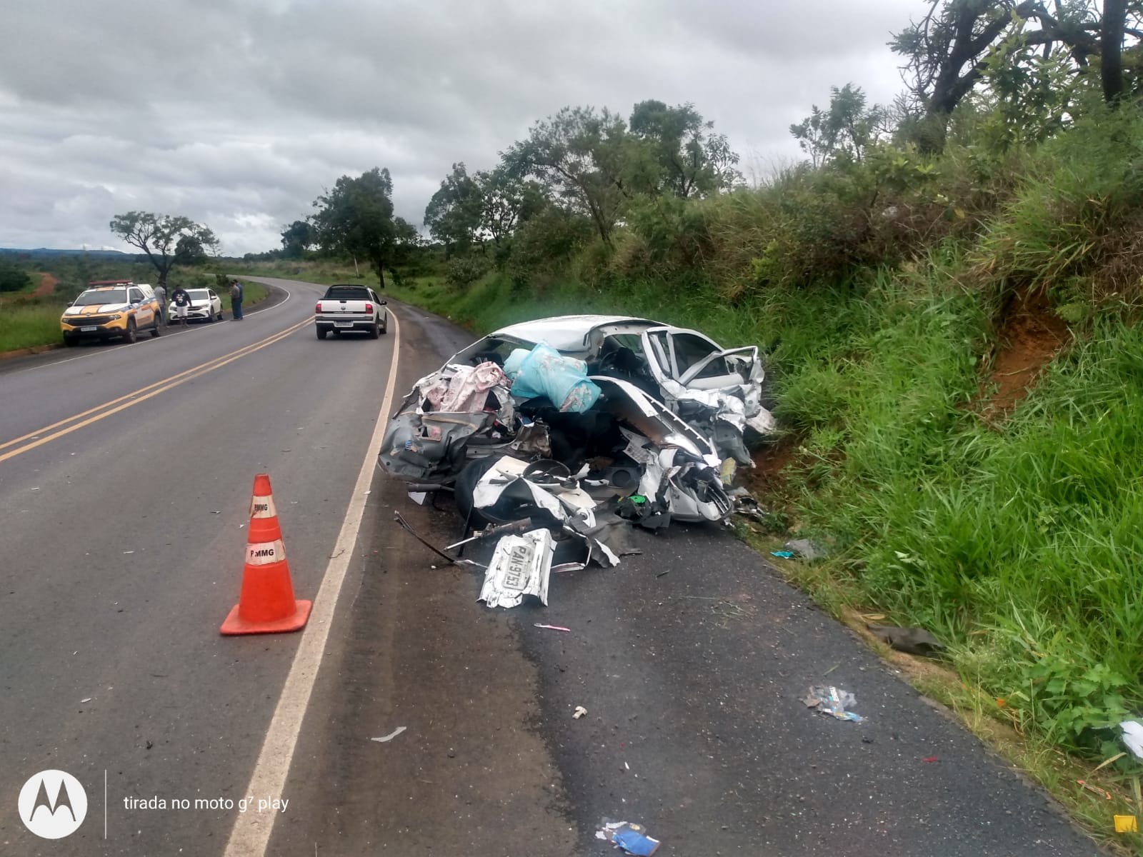 Um menino que estava no banco traseiro foi ejetado. A criança foi levada pelo resgate do Corpo de Bombeiros de Campos Altos para o Pronto Atendimento de São Gotardo/MG, mas não resistiu aos ferimentos e morreu.