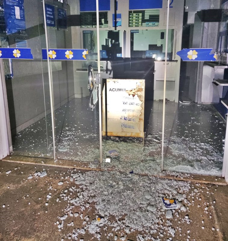 De acordo com informações policiais, por volta das 3h. da madrugada de hoje (7), três criminosos, encapuzados e armados com arma de fogo deslocaram em uma Fiat/Touro, cor vermelha, suja de terra até a praça principal do distrito, onde utilizando um pé de cabra, quebraram a porta de vidro de uma lotérica e arrombaram o cofre.