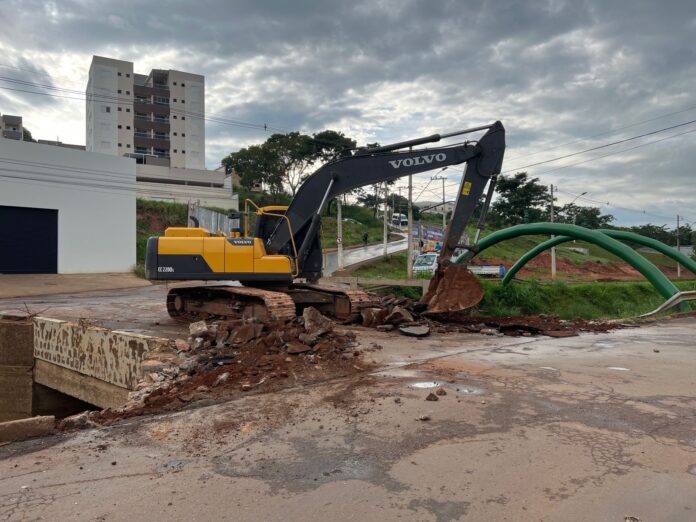 Demolição de ponte marca início das obras de canalização do Córrego do Monjolo em Patos de Minas